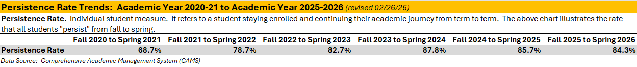 Retention Rates, Persistence Rates, IPEDS Graduation Rates and Transfer-Out Rates (downloadable PDF Reports)