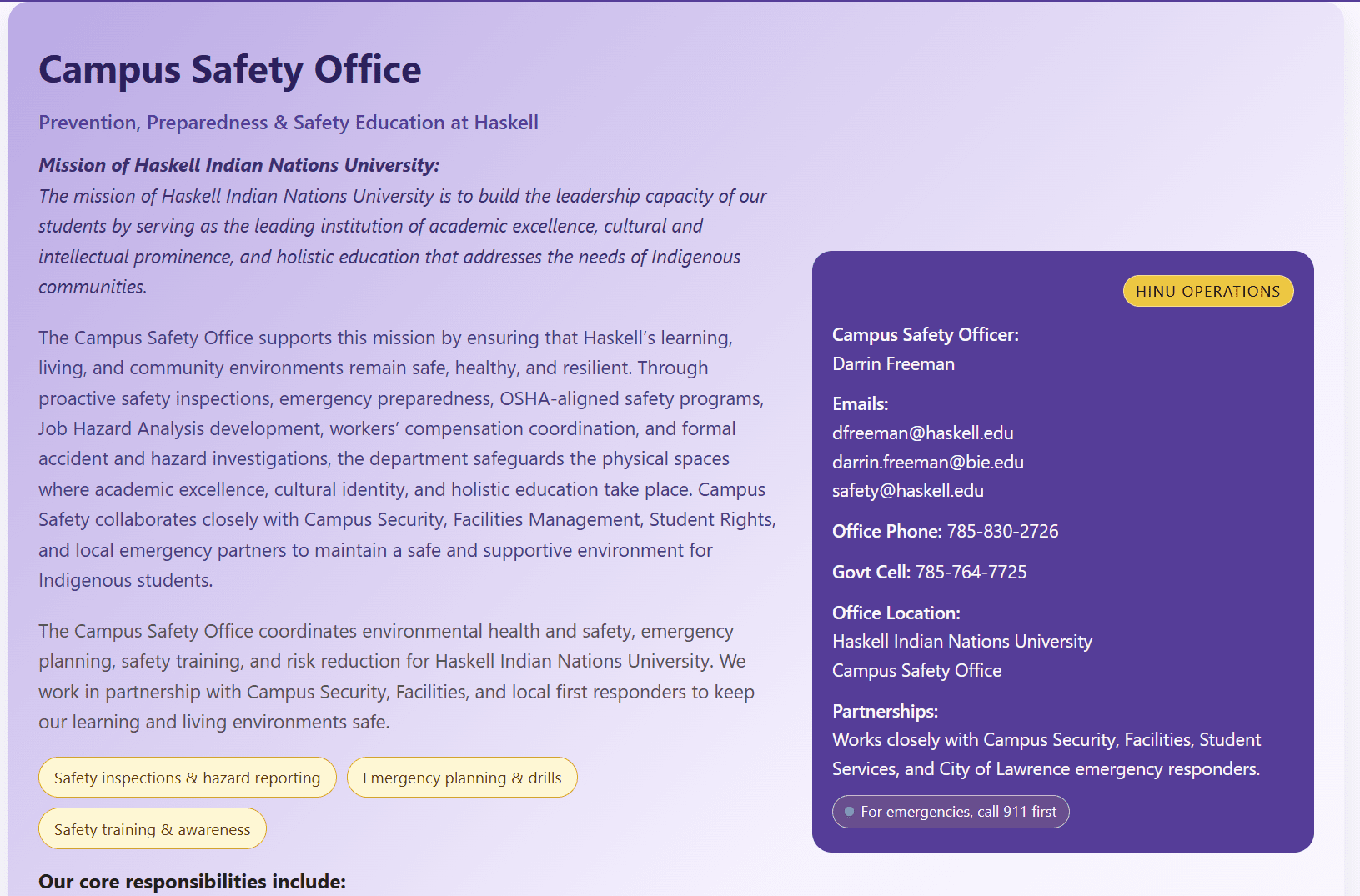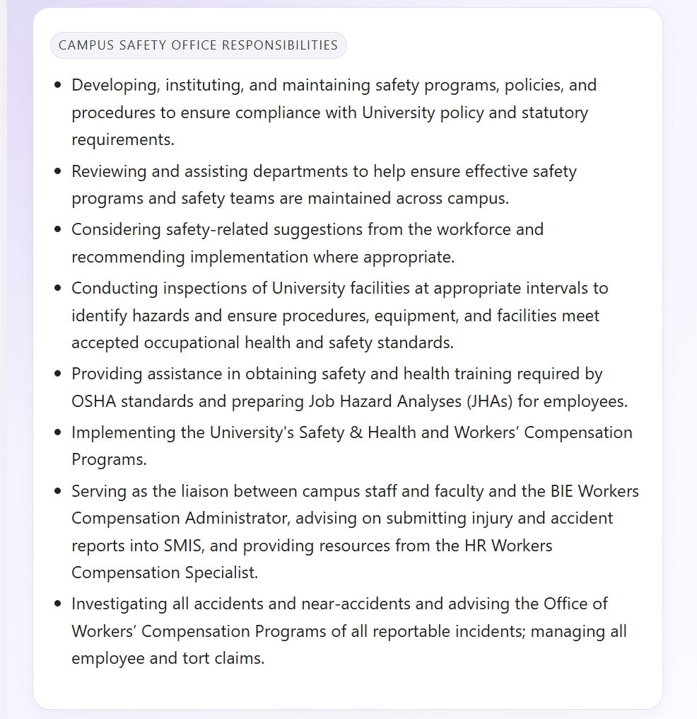 University Operations Facilities About Staff Campus Dining Services Federal Campus Security Campus Safety Office Space Utilization & Event Scheduling Campus Safety Office